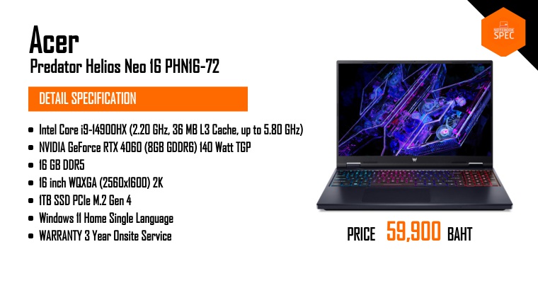 โน้ตบุ๊คเล่นเกมตัวคุ้มของปี 2024 สเปคก็โหด ราคาก็ดี ! | Acer Predator Helios Neo 16Dec 27, 2024 -