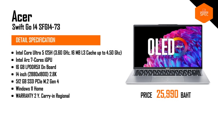 Acer Swift Go 14 AI โน้ตบุ๊คพลัง Snadragon X Plus มี AI ช่วยทำงาน ในราคาเบาๆ #Acer #Snadragon #nbsNov 30, 2024