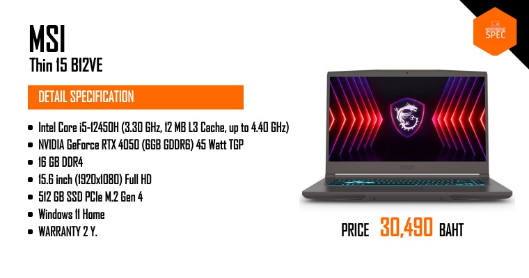 รีวิว MSI Thin 15 B12U โน๊ตบุ๊คสายทำงานมีการ์ดจอแยก พกง่าย 1.86 กก. เริ่มแค่ 19,990 บาท!May 20, 2024