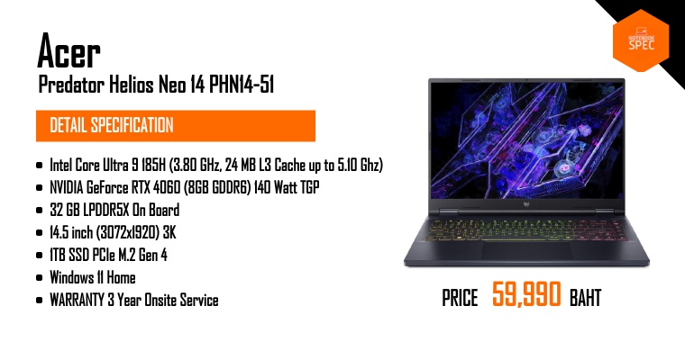 โน้ตบุ๊คเล่นเกมตัวคุ้มของปี 2024 สเปคก็โหด ราคาก็ดี ! | Acer Predator Helios Neo 16Dec 27, 2024 -