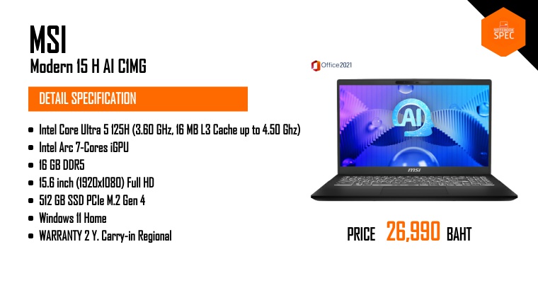 7 โน๊ตบุ๊ค MSI AMD Ryzen สุดคุ้ม มี AI กับ Office แท้ เกมเมอร์ถูกใจ ครีเอเตอร์ก็รัก! ตอบโจทย์ทุกงานเล่นได้ทุกเกม!!Aug 24, 2024 -