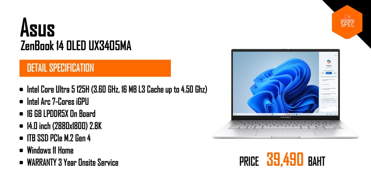 #Unbox #ASUS #Zenbook14 ได้ซีพียูใหม่ ราคา 39,990 บาท จอ OLED มีปากกาด้วยMar 23, 2025 -