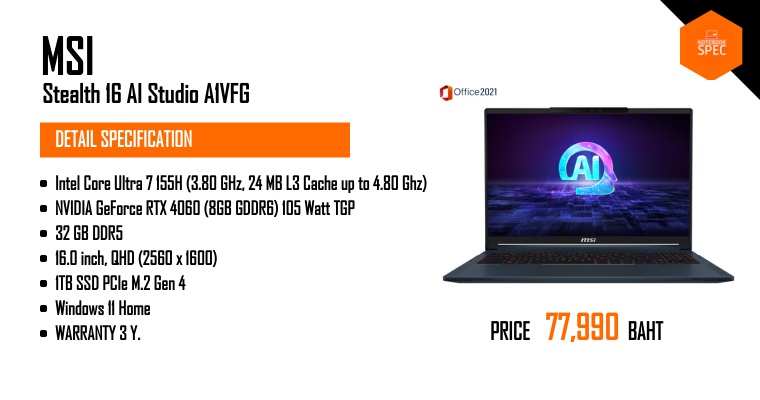 รีวิว MSI Stealth A16 AI+ โน๊ตบุ๊ค Copilot+ PC หน้าตาเรียบหรู สั่ง AI เร็วทันใจ! หัวใจ AMD Ryzen AI+GeForce RTX 4070 ทำงานก็เลิศ เล่นเกม 4K ก็ไหว!!Nov 23, 2024 -