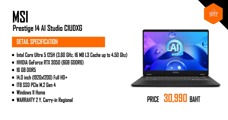 MSI Prestige 14 Ai Studio จบงานไวมี AI เพื่อครีเอเตอร์และเกมเมอร์พกพาOct 2, 2024 -
