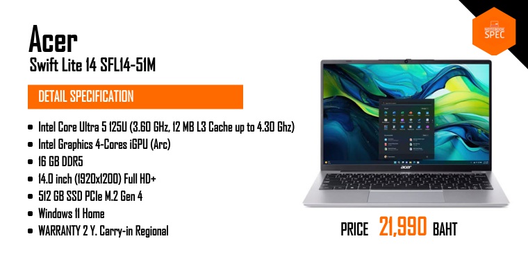 โน๊ตบุ๊คทำงาน งบ 20,000 บาท บางเบา ครบคุ้ม | Acer Swift Lite 14Apr 5, 2025 -