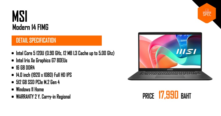 MSI Modern 14 พลัง Intel Core i5 จอกาง 180 คีย์บอร์ดมีไฟ ได้ MS Office แค่ 16,490May 10, 2025 -