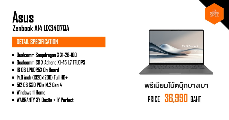 ASUS Zenbook A14 รุ่นใหม่ ตอบโจทย์สายทำงานสุดๆ ทำงานได้ลื่นๆ ไม่พอ แบตก็ทนถึงใจ 20 ชม. #ZenBookFeb 16, 2025 -