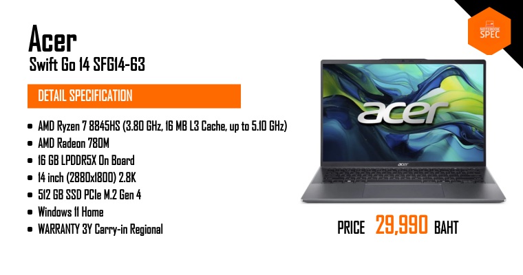 แรงแต่บางเบา ทรงพลัง AI จาก AMD | รีวิว Acer Swift Go 14 AIJun 27, 2025 -