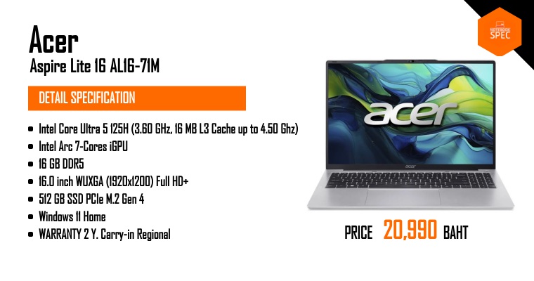 โน้ตบุ๊ค AI จอใหญ่ สเปคครบ วัสดุดี ตอบโจทย์สายทำงาน รีวิว Acer Aspire 16 AINov 24, 2025 -