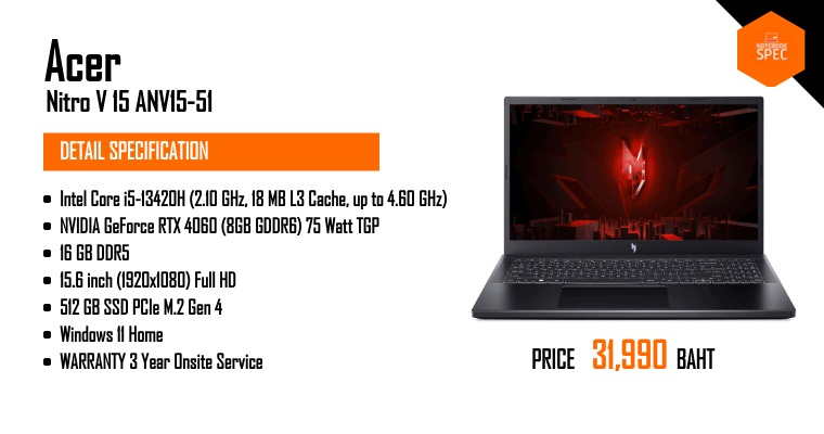 รีวิว Acer Nitro V 15 ANV15 จ่าย 29,990.- ได้ RTX 50 Series คู่ Intel 13th Generation ทำงานหนักก็สบาย เล่นเกมปรับสุดก็ไหว! สายคุ้มต้องโดน!Dec 31, 2025 -