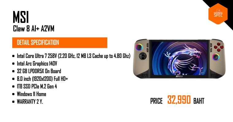 เครื่องเกมพกพา MSI Claw A8 BZ2EM รุ่นล่าสุด เล่นเกมเป็นยังไงบ้าง #MSI #MSIClaw #เครื่องเกมพกพาAug 8, 2025 -