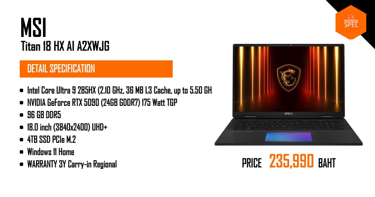 ที่สุดของโน้ตบุ๊คเล่นเกมปี 2025 โหดสุด จัดเต็มสุด !! | รีวิว MSI Titan 18 HX AIJun 7, 2025 -