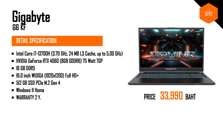 Gigabyte G6 เกมมิ่งโน๊ตบุ๊ค RTX 4060 แรงดี แค่ 41,990 บาท! | NBS ReviewJan 5, 2024 -