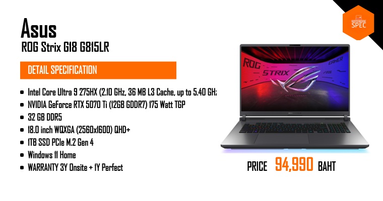 เกมมิ่งโน้ตบุ๊ค ASUS ROG Strix G16 สเปคนี้ ราคานี้ #ASUS #ROG #ROGSTRIX #RTX50SeriesJul 22, 2025 -