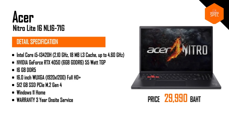 โน๊ตบุ๊คเล่นเกม งบ 26,xxx ได้ RTX 4050 น่าใช้ขนาดไหน ? | รีวิว Acer Nitro Lite 16Apr 23, 2025 -