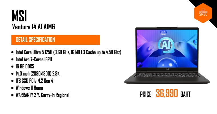รีวิว MSI Venture 15 AI หัวใจ Intel Core Ultra งบ 30,000 บาท ฟีเจอร์ครบ โปรแกรมพร้อมใช้ โน๊ตบุ๊คทำงานเครื่องนี้สายทำงานต้องเลิฟ!Jun 13, 2025 -