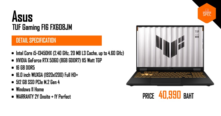 รีวิว ASUS TUF Gaming F16 จับคู่ของแรง Intel Gen 13+RTX 5060 ราคา 44,990 บาท เล่นเกมไหนก็สบาย ทำงานอะไรก็ชิล ฟีเจอร์อัดแน่นเต็มเครื่อง!!Jun 17, 2025