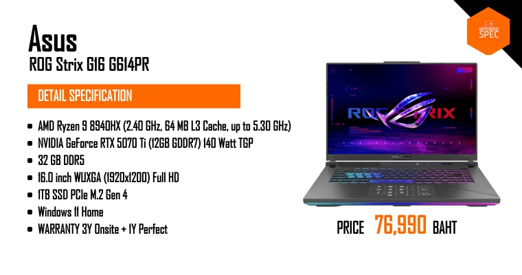 เกมมิ่งโน้ตบุ๊ค ASUS ROG Strix G16 สเปคนี้ ราคานี้ #ASUS #ROG #ROGSTRIX #RTX50SeriesJul 22, 2025 -