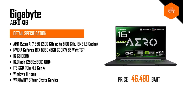 ตัวคุ้ม RTX 5070 ดีไซน์เรียบๆ ขาวสวย สเปคดี #GIGABYTE #AeroX16 #RTX5070 #RyzenAI #โน้ตบุ๊คJul 2, 2025 -