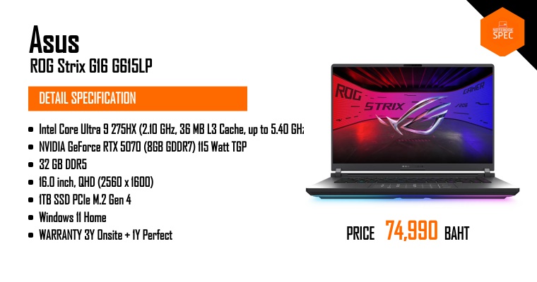 เกมมิ่งโน้ตบุ๊ค ASUS ROG Strix G16 สเปคนี้ ราคานี้ #ASUS #ROG #ROGSTRIX #RTX50SeriesJul 22, 2025 -