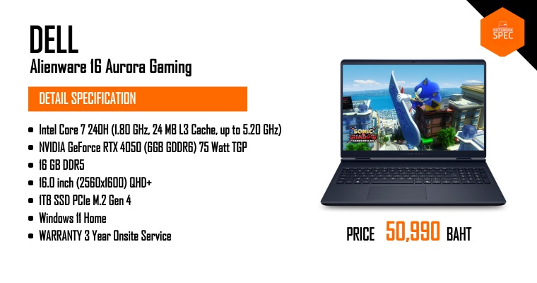 รีวิว Alienware 16 Aurora โน๊ตบุ๊คพลังเอเลี่ยน Intel Core 9+RTX 5070 ในงบ 85,990 บาท ดีไซน์สวยหรูไม่แพ้ใคร เล่นเกมลื่นไหลพอตัว!Aug 5, 2025 -