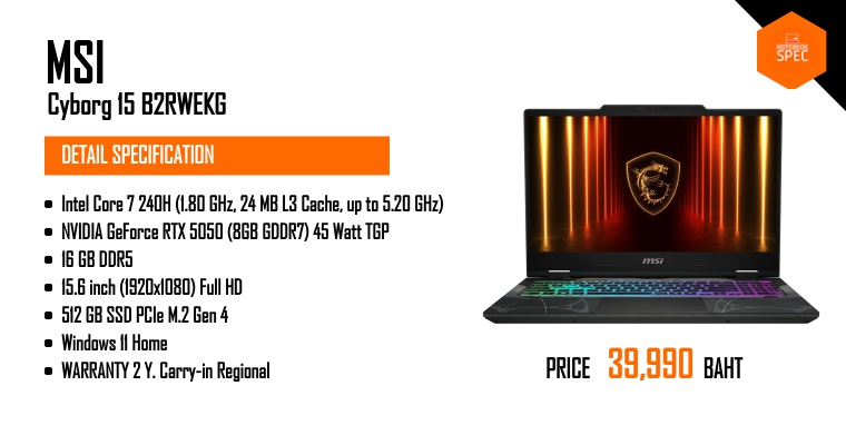 MSI Cyborg 15 ใหม่ สเปคแรงดี โปรแกรมครบ ราคา 34,990 บาท คุ้มกว่าเดิม!! #MSI #Cyborg15Nov 21, 2025 -