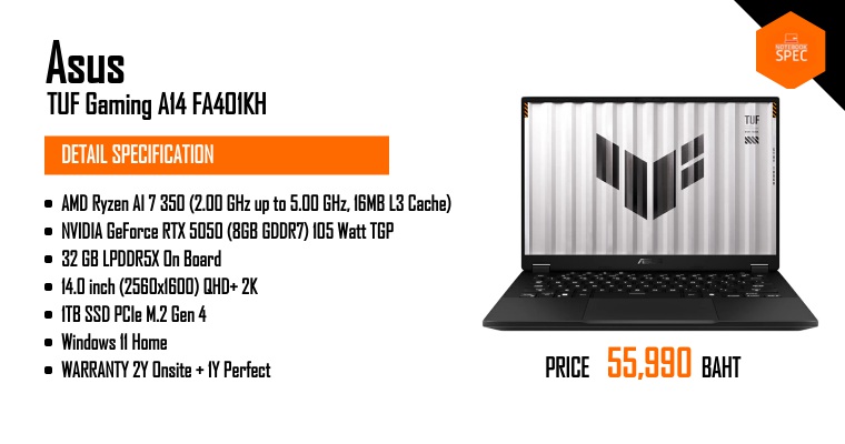 ปรับสเปคนิด ลดราคาหน่อย น่าสนใจขึ้นเยอะ | ASUS TUF Gaming A14 2025Aug 20, 2025 -