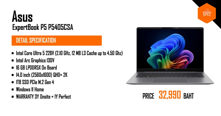 โน้ตบุ๊คทำงาน ที่ใช้ได้ทุกวัน | ASUS ExpertBook P5Nov 29, 2024 -