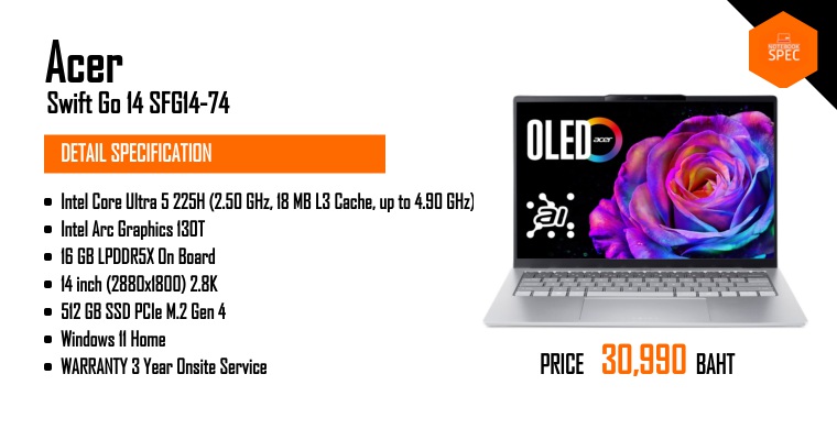 Acer Swift Go 14 AI โน้ตบุ๊คพลัง Snadragon X Plus มี AI ช่วยทำงาน ในราคาเบาๆ #Acer #Snadragon #nbsNov 30, 2024