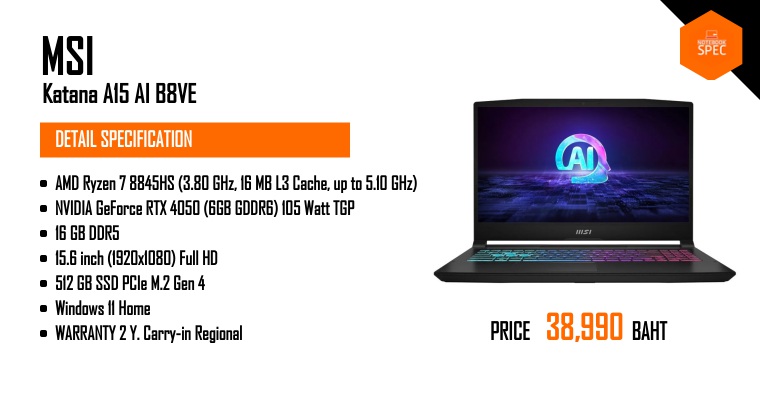 MSI Katana A15 AI จอใหญ่ AMD Ryzen 7, RTX4060 แค่ 4 หมื่นกว่าApr 21, 2024 -