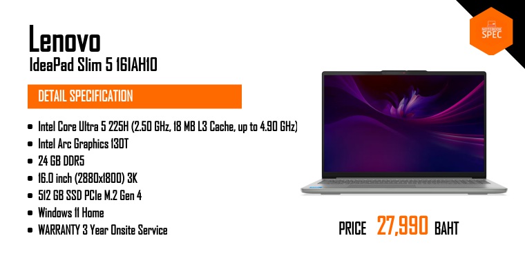 รีวิว Lenovo IdeaPad Slim 5 16AHP9 ชิป Ryzen 8000 แบต 10 ชม. อยู่นานจบวัน งานหนักก็ได้เล่นเกมก็สู้! แค่ 31,990 บาท!!Sep 19, 2024 -