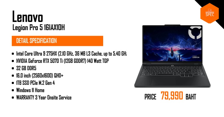 รีวิว Lenovo Legion Pro 5i ตัวรองก็เทพได้ สเปคใส่สุด ครบจบทั้งทำงานเล่นเกม !Sep 15, 2025 -
