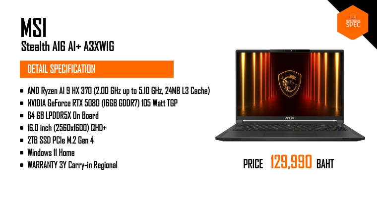 Preview MSI Stealth A16 AI+ หน้าตาเรียบหรูพรีเมี่ยม แต่แรงด้วย AMD Ryzen AINov 5, 2024 -