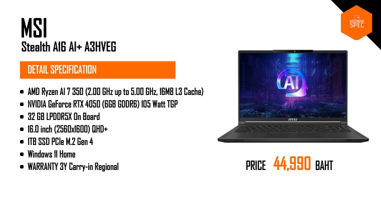 Preview MSI Stealth A16 AI+ หน้าตาเรียบหรูพรีเมี่ยม แต่แรงด้วย AMD Ryzen AINov 11, 2024 -
