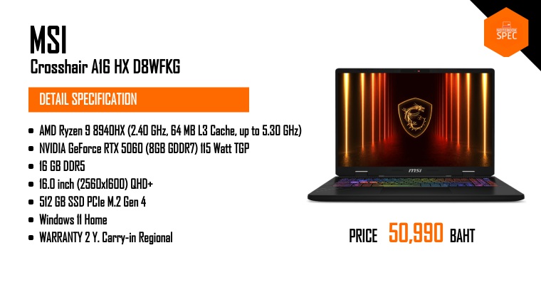 เปิดตัวโน้ตบุ๊ก MSI สุดล้ำ!มาพร้อมการ์ดจอ GeForce RTX™ 5060 วางจำหน่ายแล้ววันนี้ทั่วประเทศJun 24, 2025