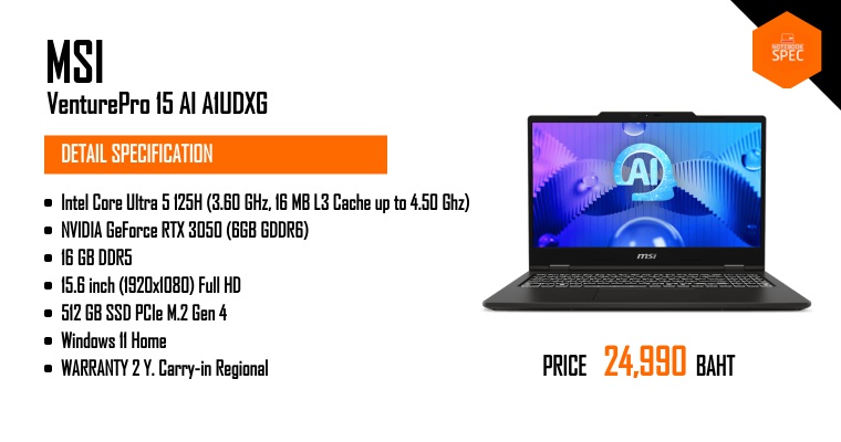 พบกับ MSI Venture และ Venture Pro Series ใหม่ล่าสุด พลังประมวลผลเหนือระดับในดีไซน์บางเบา พกพาสะดวก พร้อมลุยทุกภารกิจ!Apr 25, 2025 -