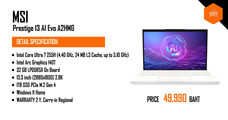 รีวิว MSI Prestige A16 AI+ โน๊ตบุ๊คทำงานสุดหรู พลัง AMD Ryzen AI ราคา 50,990 บาทDec 7, 2024 -