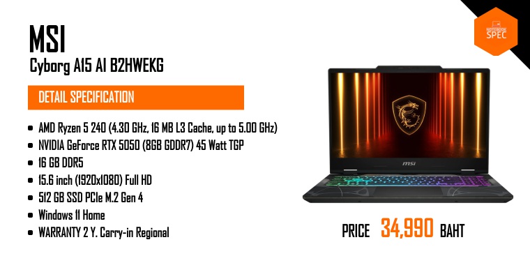 MSI Cyborg 15 ใหม่ สเปคแรงดี โปรแกรมครบ ราคา 34,990 บาท คุ้มกว่าเดิม!! #MSI #Cyborg15Nov 21, 2025 -