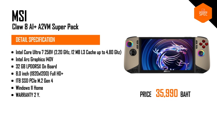 รีวิว MSI Claw 8 AI+ แรงถึงใจด้วย Intel Core Ultra 200V ยกเครื่องใหม่จากภายนอกสู่ภายใน เล่นเกมไหนก็สบาย!!Mar 17, 2025 -