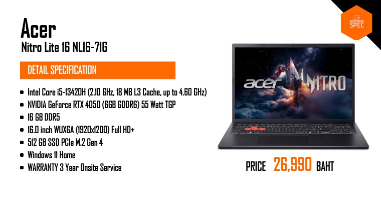 โน๊ตบุ๊คเล่นเกม งบ 26,xxx ได้ RTX 4050 น่าใช้ขนาดไหน ? | รีวิว Acer Nitro Lite 16Apr 23, 2025 -