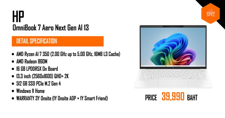 HP OmniBook 7 Aero เครื่องสวย น้ำหนักเบา ขุมพลัง AI ใช้งานได้เต็มประสิทธิภาพ #HP #OmniBookAug 5, 2025 -