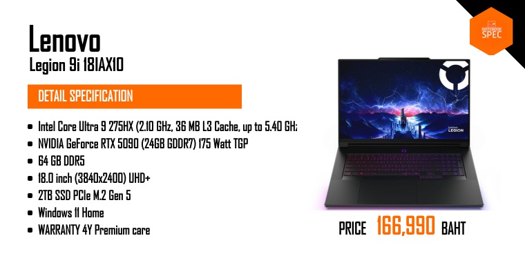 รีวิว Lenovo Legion Pro 7 16IAX10H สเปคแรง จับคู่ Intel Core Ultra 9 กับ RTX 50 Series เล่นเกม 4K ลื่น ทำงานหนักก็ไหว จอ OLED สวยสดเต็มตา ลูกเล่นมีมาเพียบ!!Dec 12, 2025 -