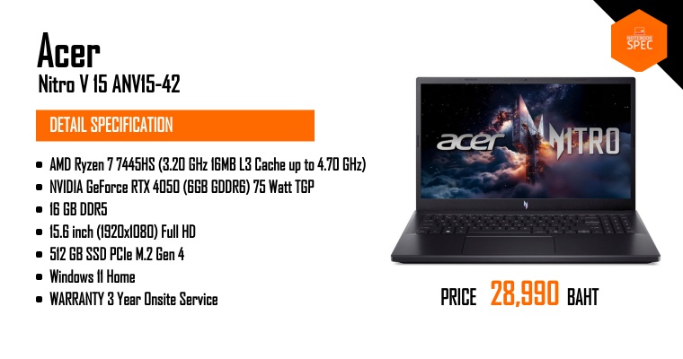 รีวิว Acer Nitro V 15 ANV15 จ่าย 29,990.- ได้ RTX 50 Series คู่ Intel 13th Generation ทำงานหนักก็สบาย เล่นเกมปรับสุดก็ไหว! สายคุ้มต้องโดน!Dec 31, 2025 -