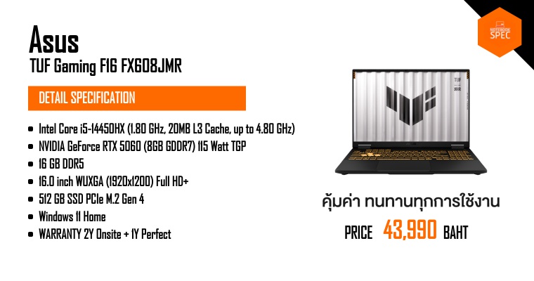 รีวิว ASUS TUF Gaming F16 จับคู่ของแรง Intel Gen 13+RTX 5060 ราคา 44,990 บาท เล่นเกมไหนก็สบาย ทำงานอะไรก็ชิล ฟีเจอร์อัดแน่นเต็มเครื่อง!!Jun 17, 2025