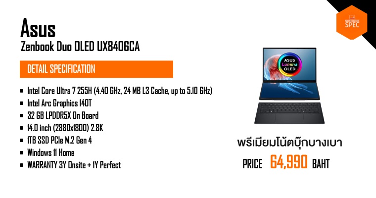 8 โน๊ตบุ๊คเล่นเกม Core Ultra 50000 บาท สเปคดีจอพับได้ มี Office แท้!! เริ่มแค่ 23,990 บาทJun 16, 2024 -