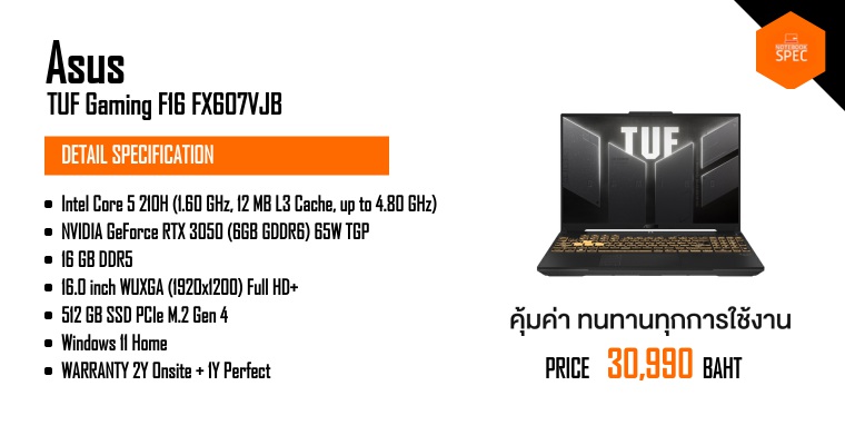 รีวิว ASUS TUF Gaming F16 โน้ตบุ๊คเกมมิ่งงบ 30,000 ที่ดูดีที่สุด!Dec 23, 2025 -