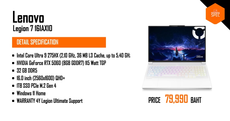รีวิว Lenovo Legion 7i โน้ตบุ๊คเกมมิ่งตัวจบ สีขาวคลีนๆ อย่างสวย !!Sep 17, 2025 -