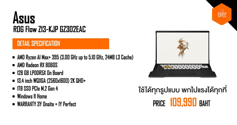 รีวิว ASUS ROG Flow Z13-KJP แท็บเล็ตเกมมิ่ง Limited Edition เพียง 28 เครื่องในไทย สเปคแรงเล่นเกมไหนก็ลื่นด้วย Ryzen AI Max+ และ RAM 128 GB ในราคา 109,990 บาท!!Feb 25, 2026 -
