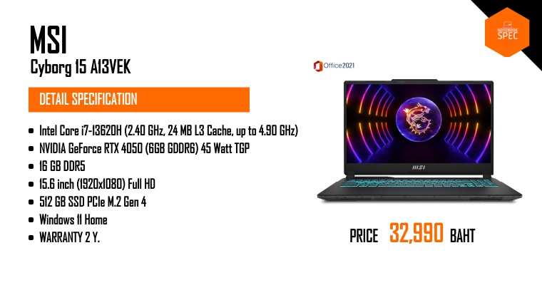MSI Cyborg 15 ใหม่ สเปคแรงดี โปรแกรมครบ ราคา 34,990 บาท คุ้มกว่าเดิม!! #MSI #Cyborg15Nov 21, 2025 -