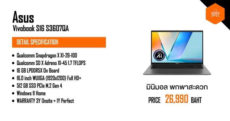 อัพสเปคใหม่ แบตถึก ราคาน่าโดน | ASUS Vivobook S16Aug 29, 2025 -